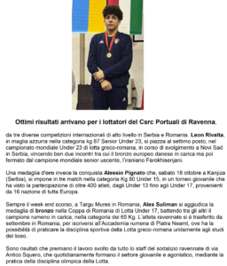 - Lotta Greco-Romana e stile libero maschile e femminile , sezione che a portato il C.S.R.C. Portuali ai primi posti della graduatoria Italiana e che svolge la propria attività presso la palestra Portuali in Via A. Squero, 6, organizzando corsi di avviamento allo Sport per bimbi bimbe dai 6 anni in su e attività giovanile. Il responsabile della sezione è Shartos Carlos.